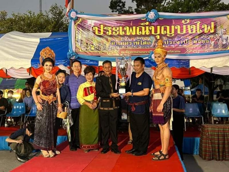 องค์การบริหารส่วนตำบลหนองอึ่ง ร่วมกิจกรรมร่วมสืบสานประเพณีบุญบั้งไฟอำเภอราษีไศลประจำปี 2566
