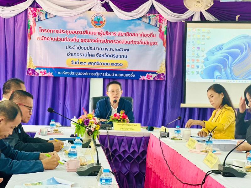 description นายอนุชา เรืองอมรวิวัฒน์ นายอำเภอราษีไศล เป็นประธานในพิธีเปิดการประชุมอบรมสัมมนาผู้บริหาร สมาชิกสภาท้องถิ่น พนักงานส่วนท้องถิ่นขององค์กรปกครองส่วนท้องถิ่นสัญจร ประจำปีงบประมาณ พ.ศ. 2567 ประจำเดือน พฤศจิกายน 2566 โดยมีนางสาวเจษฎาภรณ์ ยาหอม ท้องถิ่นอำเภอราษีไศล นายสมชาย มีพันธ์ นายกองค์การบริหารส่วนตำบลหนองอึ่ง ผู้กล่าวรายงาน นายกองค์การบริหารส่วนตำบล ปลัด หัวหน้าส่วนราชการ พนักงานส่วนตำบล สมาชิกสภาองค์การบริหารส่วนตำบลหนองอึ่ง เข้าร่วมการประชุมฯ ณ ห้องประชุมองค์การบริหารส่วนตำบลหนองอึ่ง อำเภอราษีไศล จังหวัดศรีสะเกษ person admin