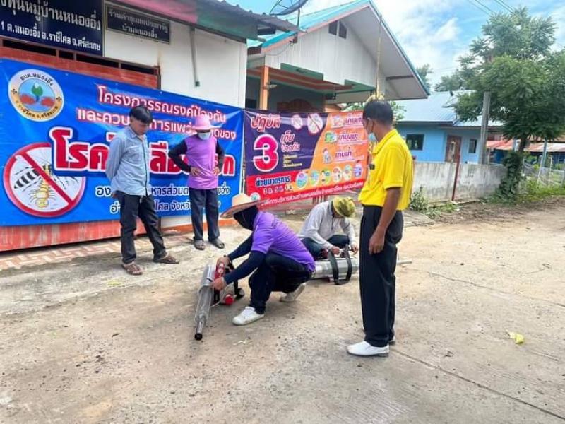โครงการรณรงค์ป้องกันการแพร่ระบาดของโรคไข้เลือดออกประจำปีงบประมาณ พ.ศ. 2566 องค์การบริหารส่วนตำบลหนองอึ่ง โดยการพ่นหมอกควัน หยอดทรายอะเบทในพื้นที่ตำบลหนองอึ่งทั้ง 17 หมู่บ้าน ระหว่างวันที่ 12 - 16 มิถุนายน 2566