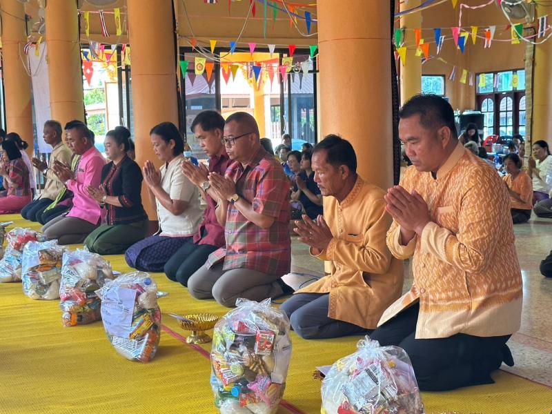 กิจกรรมนุ่งผ้าไทยใส่บาตรตามแนวทางการดำเนินโครงการ 1 ตำบล 1 หมู่บ้านยั่งยืน ณ วัดบ้านโต่งโต้น ตำบลหนองอึ่ง อำเภอราษีไศล จังหวัดศรีสะเกษ