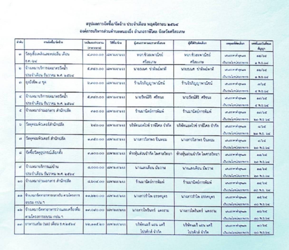 สรุปผลการดำเนินการจัดซื้อจัดจ้างในรอบเดือน พฤศจิกายน 2564