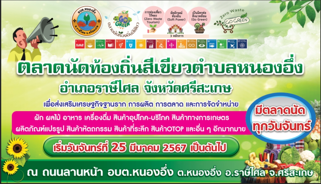 ชื่อเรื่อง : ประชาสัมพันธ์ การเข้าร่วมโครงการตลาดนัดท้องถิ่นสีเขียวตำบลหนองอึ่ง