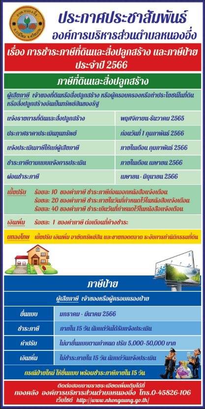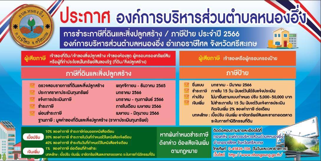 ประกาศประชาสัมพันธ์ เรื่อง การชำระภาษีที่ดินและสิ่งปลูกสร้าง/ภาษีป้าย ประจำปี2566